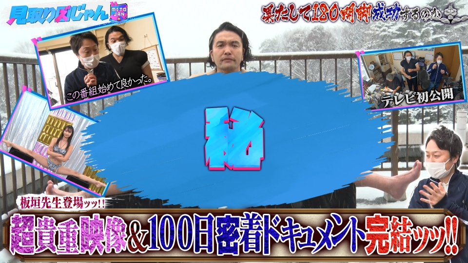 「マジでこの番組始めて良かった…」 衝撃の100日ドキュメンタリー完結ッッ!! かまいたいち、ニューヨークに続け!! 肉体改造で人気漫画キャラ範馬勇次郎の 「180° 開脚」に挑戦中の盛山。 そんな盛山にいよいよ運命の最終日…